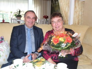 Würdigung und Anerkennung: Bürgermeister Klaus Gier überreichte Rosemarie Hoppe einen Blumenstrauß und dankte ihr für die langjährige Betreuung des Reisemobilstellplatzes in Hemfurth-Edersee. (Foto: Klein)