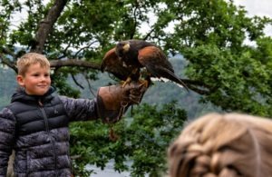 Besuch der Greifenwarte in Hemfurth-Edersee: David lässt Wüstenbussard Huanita vom Falknerhandschuh starten. (Foto: Johanna Mienert)