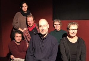 Proben für die Premierenvorstellung des Stücks „Genannt Gospodin“ im AusZeitTheater (von links): Stefan Betzler, Maren Meinhold, Stefan Tiepermann, Hauptdarsteller Frank Sonnborn, Christiane Eicker-Lemnitz und Ulla Pospiech. Bei der Probe fehlten Mechthild Heck und Hajo Falk-Dietrich. (Foto: Klein)