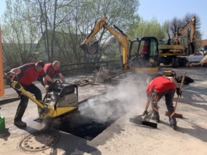 Mit vereinten Kräften: Im Einmündungsbereich der Bundesstraße 485 zur Bahnhofstraße in Giflitz wurden schadhafte Abwasserleitungen repariert. (Foto: Privat)