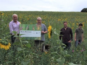 Biomasse sei ein wichtiger Baustein der Energiegewinnung, erklärte Werner Kuhn vom Netzwerk Lebensraum Feldflur beim Ortstermin in Mehlen. Wenngleich der Anbau von Energiemais wegen seines hohen Biogasertrags derzeit immer noch die erste Wahl sei. Kuhn erinnerte an die Zeit nach dem beschlossenen Atomausstieg und die damals hochgelobten Anfänge der Biomasseproduktion. „Heute müssen wir uns mit dem Vorwurf vermaister Landschaften auseinandersetzen. Darum wollen wir gemeinsam Wege aufzeigen, wie die Energieerzeugung aus Biomasse enger mit dem Arten- und Naturschutz verknüpft werden kann.“ Ziel des Netzwerks Lebensraum Feldflur, das sich aus Akteuren der Jagd, Naturschutz, Bienenhaltung und Energiewirtschaft zusammensetzt, sei es eine ökologisch und ökonomisch tragfähige Ergänzung zu konventionellen Energiepflanzen in der Landwirtschaft zu etablieren. Michael Bischoff habe mit der Saat artenreicher Mischungen aus Wild- und Kulturpflanzen einen wichtigen Beitrag für das Pilotprojekt Bunte Biomasse geleistet. Das Anbausystem solle deutschlandweit auf möglichst vielen Flächen angewendet werden und sich in der landwirtschaftlichen Praxis dauerhaft etablieren, erklärte Werner Kuhn.