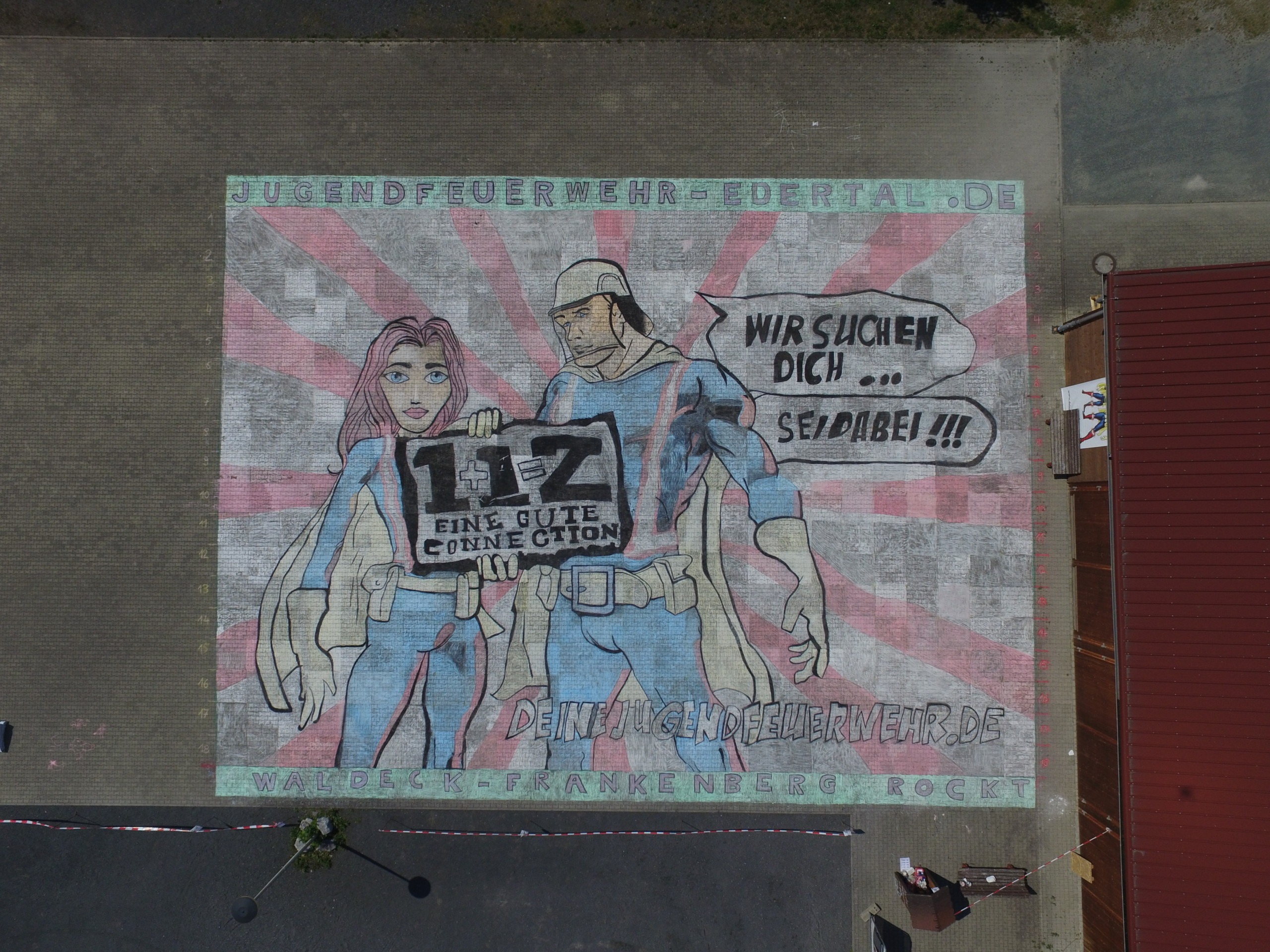 Hessenweit fand die Kreidemalaktion auf dem Festplatz an der Eder Aufmerksamkeit. Eingeteilt in ein Quadratmeter-Raster konnte jeder mit Hilfe von Vorlagen bei der Vervollständigung des 520 m² großen Bildes mitwirken. Obwohl die einwöchige Aktion mehrfach wortwörtlich ins Wasser zu fallen drohte, ließen die vielen freiwilligen Picassos die Jugendfeuerwehr nicht im Regen stehen und vollendeten das letzte Bild sogar einen Tag vor dem selbstgesetzten Ziel. Landesjugendfeuerwehrwart Markus Potthoff lobte die Aktion als ein Zeichen des Zusammenhalts, während alle getrennt waren. Sogar im Radio wurde so für die Jugendfeuerwehr Werbung gemacht.