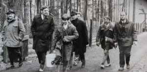 Auf dem Weg durch den neu eröffneten Wildpark (von links): Ideengeber und Revierförster Walter Tassius, Landtagsabgeordneter Hans-Otto Weber, Jan Hücker, Oberforstmeister Hugo Hücker, (dahinter unbekannt), Kreistagsabgeordneter Walter Gottmann und Gemeindevertreter Willy Bremmer. Auf dem Foto fehlen Heinz-Werner Höhle und Peter Krüger. (Reprofoto und Startseiten-Archivfoto: Uli Klein)