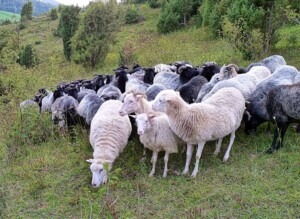 Vierbeinige Landschaftspfleger: Heidschnucken-Herde mit einigen weißen Moorschnucken.