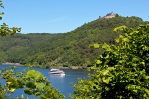 Der fast bis zum Rand gefüllte Edersee mit Schloss Waldeck im Hintergrund. (Foto: Katharina Jäger)