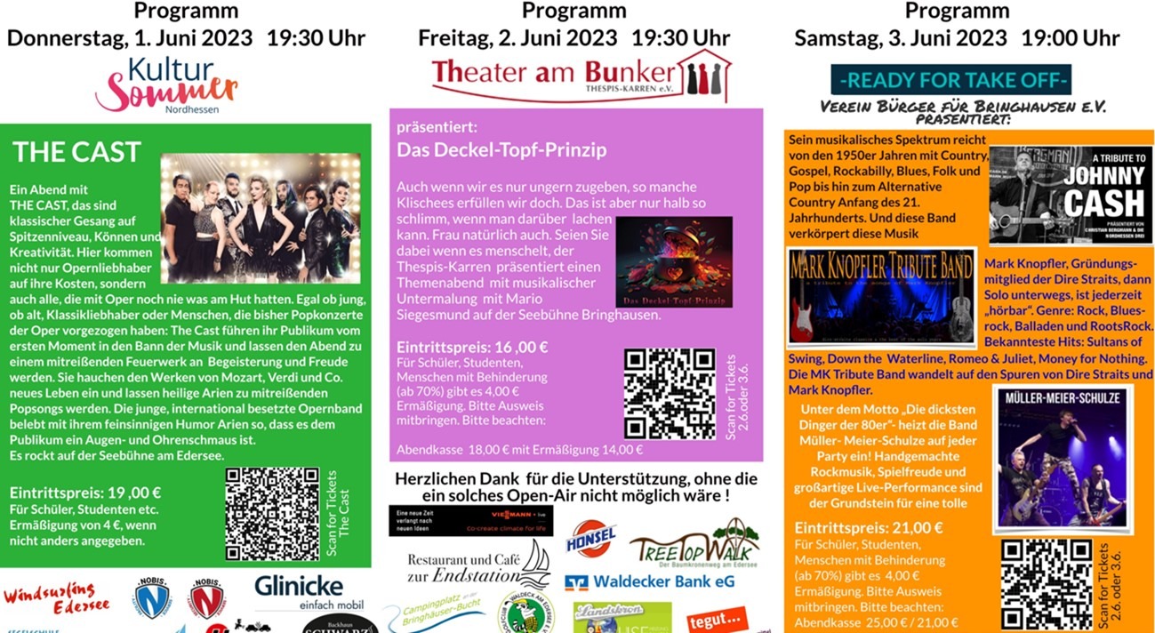 Weitere Info´s über das attraktive Beiprogramm, Ticketinformationen unter www.seebühne-bringhausen.de.