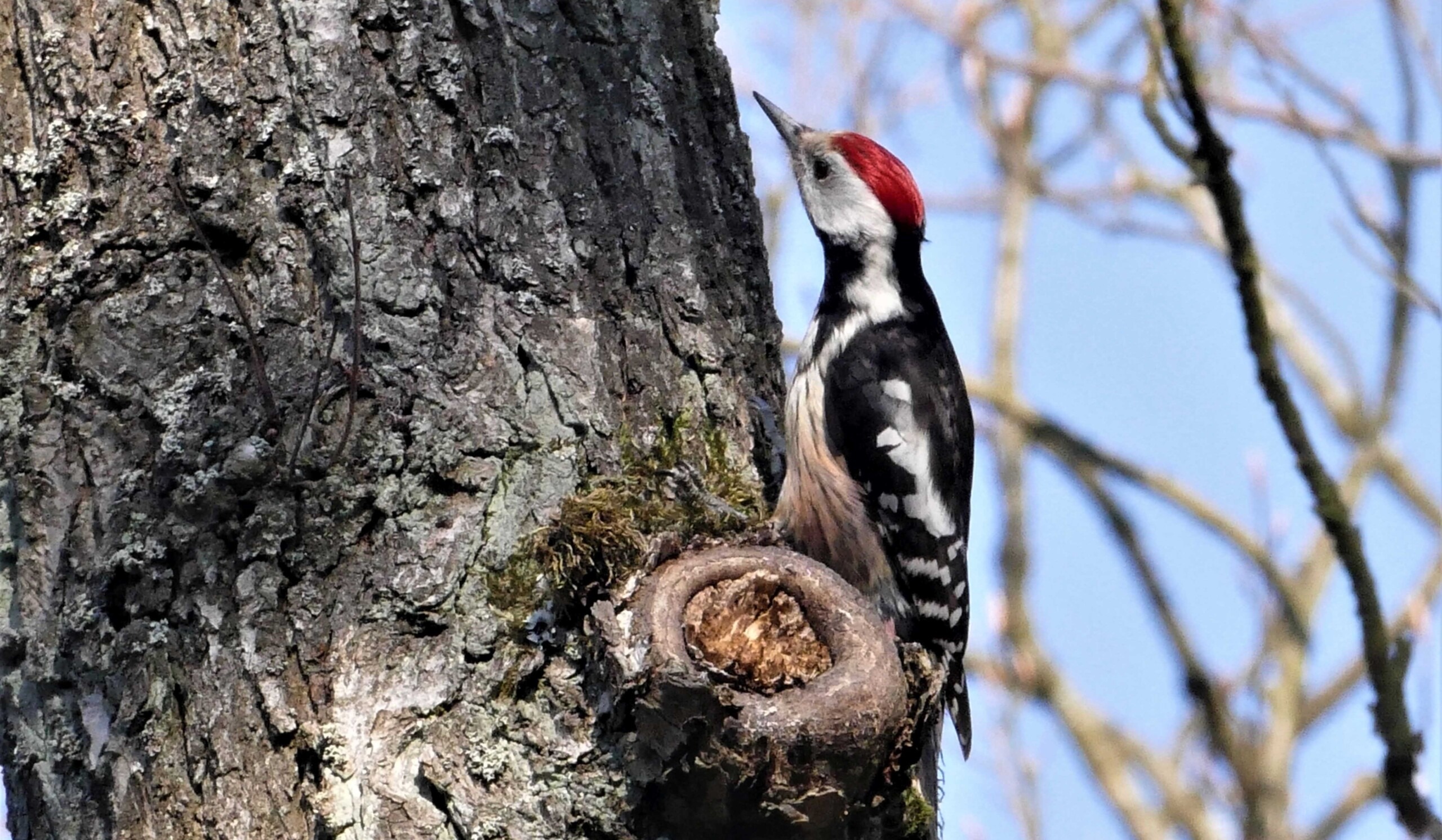 Ich glaube es hackt: Der Mittelspecht ist einer von sechs Spechtarten, der Schutz im Nationalpark findet und im Rahmen des Spechtmonitorings genauer untersucht wurde. (Foto: Matthias Schlote)