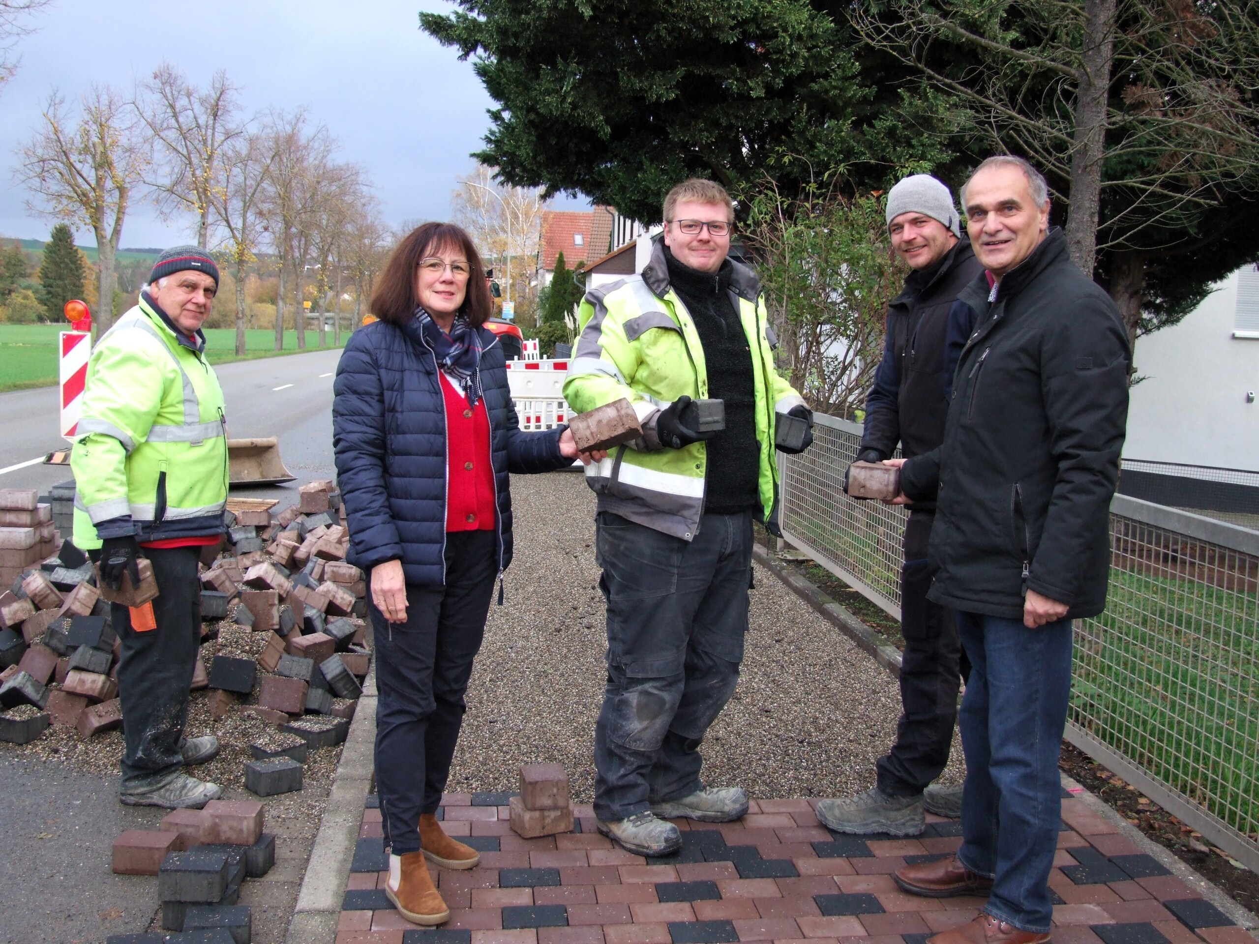 Nach dem vorübergehenden Baustopp ging es mit den Arbeiten weiter. Auf einer Länge von 250 Meter wird die Asphaltdecke auf dem Gehweg komplett entfernt und anschließend der Unterbau erneuert. In einem weiteren Arbeitsschritt steht das Verlegen von Betonpflastersteinen auf der 700 Quadratmeter großen Fläche auf dem Programm. „Der Bürgersteig ist aufgrund von Frostaufbrüchen und Setzschäden in einem desolaten Zustand“, berichtet Klaus Gier. Die Sanierung werde seinen Angaben zufolge im Zuge des Straßenunterhaltungsprogramms der Nationalparkgemeinde Edertal erledigt und sei auch aus Gründen der Verkehrssicherungspflicht unerlässlich. Gemeinsam mit Ortsvorsteherin Ute Tönges informierte sich der Verwaltungschef über den Stand der Arbeiten, die nach Auskunft von Bauunternehmer Mario Schröder voraussichtlich bis Anfang des kommenden Jahres dauern werden. „Der Gehweg war stellenweise übersät mit gefährlichen Stolperfallen“, berichtet die Ortsvorsteherin. Der Ortsbeirat sei daher froh, dass die Gemeindeverwaltung die Mängel beseitigen lässt.