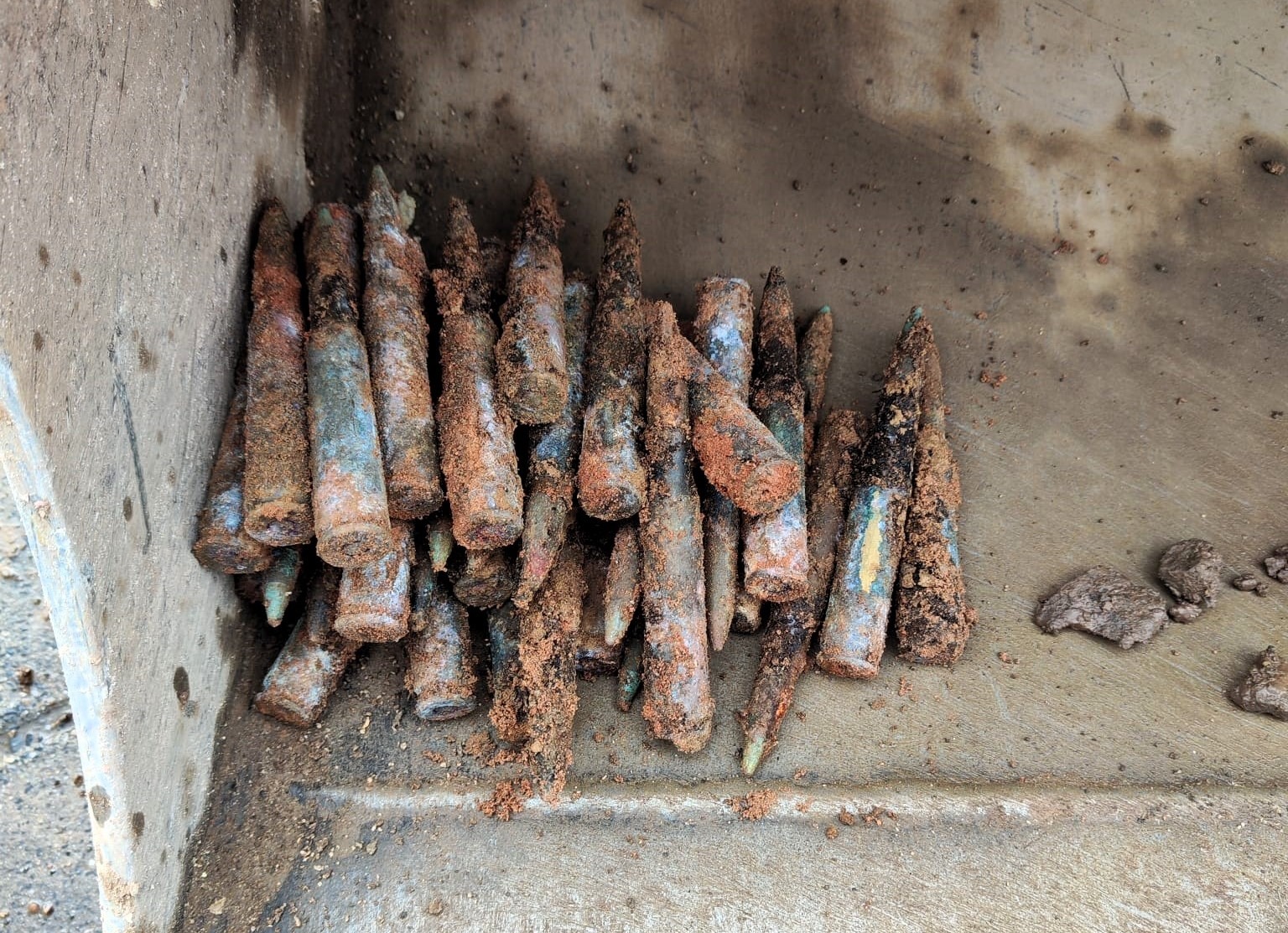 Hinterlassenschaft aus dem Zweiten Weltkrieg: Bei Baggerarbeiten stießen Mitarbeiter eines Edertaler Bauunternehmens auf scharfe 20 Millimeter-Geschosse aus amerikanischer Produktion. (Foto: pr)