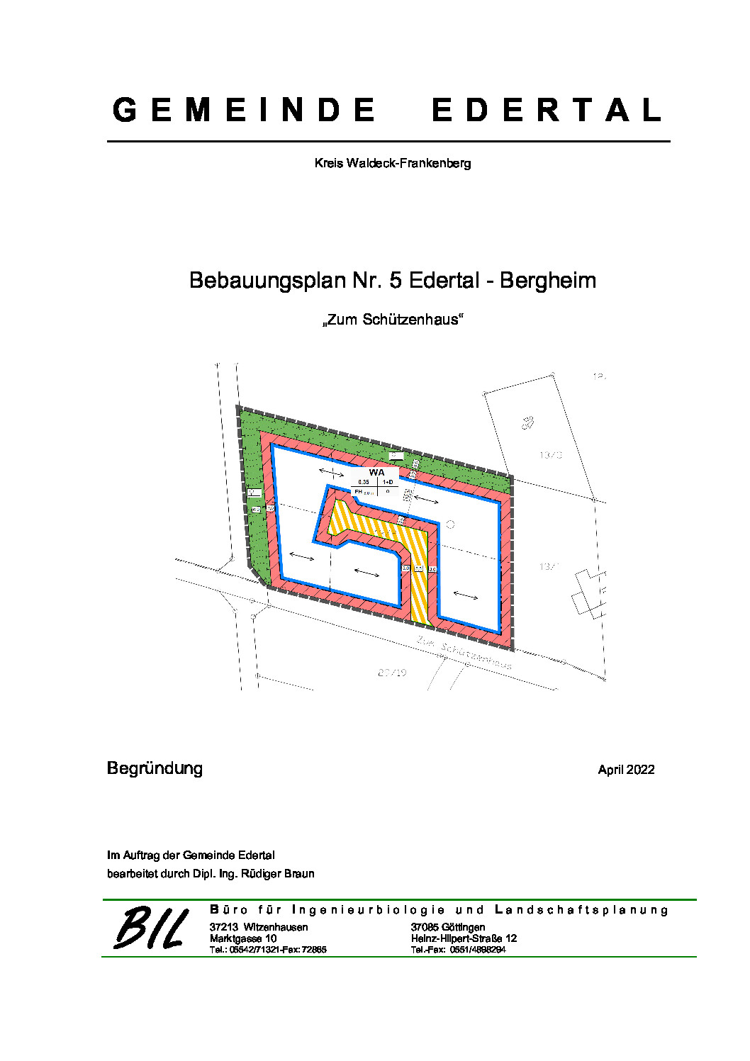 Offenlegung Bebauungsplan Nr. 5 Edertal - Bergheim – Zum Schützenhaus